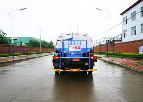 3、灑水車標準配置:前沖后灑、側(cè)噴;高位側(cè)花灑;后工作平臺,帶綠化灑水高炮,可調(diào)節(jié)成柱狀,射程≥28m;也可調(diào)節(jié)成霧狀,射程≥15m,垂直吸程7m。