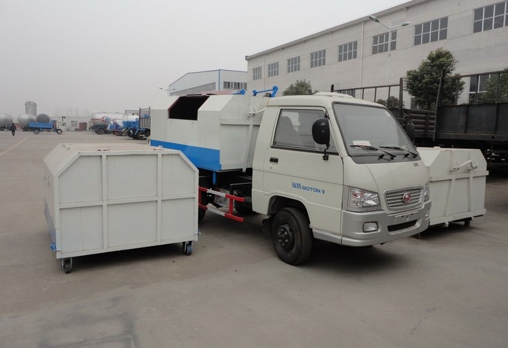 為了實現垃圾不落地的目標,蘭州市將投資1億元購置車廂可卸式垃圾車。這種垃圾車是一種集裝、卸、運功能于一體的運輸車輛,據介紹,車體和垃圾廂體是分開的,廂體安放在垃圾收集點,車輛將空廂運來,將裝有垃圾的廂體帶走。除了投垃圾的窗口外,廂體是全封閉的,以防垃圾外溢;而車輛上有一個強有力的“鉤臂”,可以將裝有垃圾的廂體輕輕一勾便放在車體上帶走。