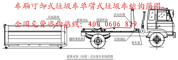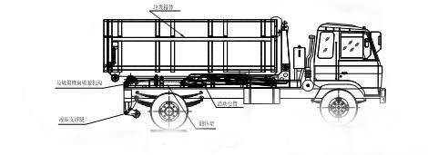 1、單臂式車廂可卸式垃圾車結(jié)構(gòu)簡(jiǎn)圖: