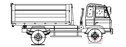 步驟 3.當(dāng)拉臂鉤鉤到箱體彎鉤時(shí),繼續(xù)推下拉臂操作手柄到落下位置,使垃圾箱體繼續(xù)上車(注意:保證垃圾箱體的縱梁位于附車架尾部?jī)珊鬂L輪之間);如圖:
