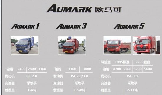 歐馬可3系輕卡,搭載康明斯ISF 2.8、3.8升發動機,主要滿足城郊高效物流需求。