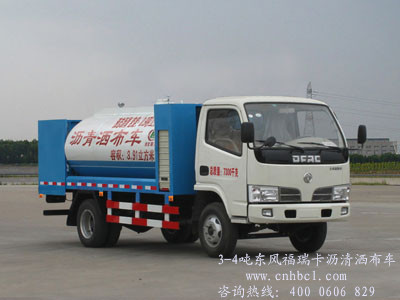 國四3-4噸東風福瑞卡瀝青灑布車配置及價格:整車型號:CLW5071GLQ4型瀝青灑布車,底盤型號:DFA1070SJ35D6,配置4B28BTCI常柴95馬力國四發動機,平頭單排可翻轉駕駛室,前橋2.5噸,后橋4.5噸,7.00-16尼龍胎,帶動力轉向;