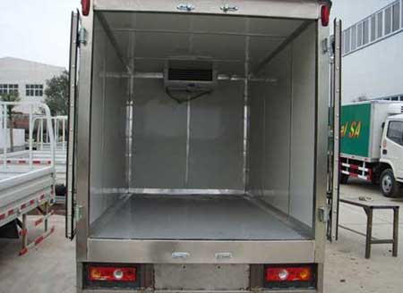 6.6萬福田寶瑞-5度冷藏車現(xiàn)車銷售中,BJ5046XLC-A1型福田寶瑞冷藏車采用安徽全柴82馬力柴油發(fā)動機,油耗低,動力足。采用寶瑞1車身,1640寬單排駕駛室,5-20變速箱,3噸后橋,6.00-15輪胎,鉚接140車架,電控熄火,暖風(fēng),廂體采用內(nèi)外玻璃鋼板材制作,厚度5cm,中間聚氨脂發(fā)泡,真空負(fù)壓,廂體底部是鋁合金防滑花紋板,廂體外部鋁合金包邊,主要適合城市運輸,滿足超市、食品經(jīng)銷商,防疫部門,醫(yī)藥公司的貨物配送,小型冷藏車首選!6.6萬福田寶瑞K1冷藏車圖片展示:
