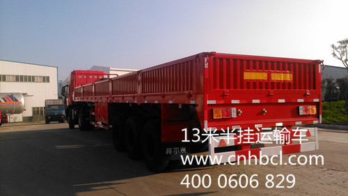福建客戶來我廠訂購了兩臺半掛車, 整車外形尺寸(mm):13000*2500*2960,貨廂尺寸(mm):128000*2350*600,邊板1.5mm,底板3mm,標配富華13T車軸三根,16T剎車片,18T支腿,90#牽引銷,11.00R-20風神鋼絲胎(12條),帶一個工具箱及備胎架,詳細車型圖片展示如下: