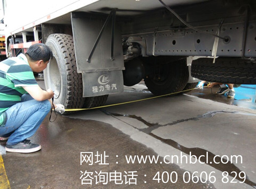海運人員正在給東風145冷藏車測量尺寸