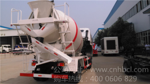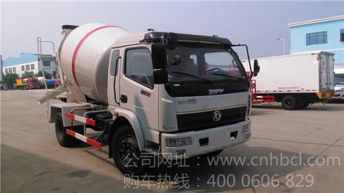 這款5方小型攪拌車整車型號:EQ5140GJB,底盤型號:EQ1140GLJ ,采用B07駕駛室(多利卡),國三玉柴140馬力中冷增壓發動機帶全功率取力器,萬里揚五檔帶副變速箱,232*(7+4)大梁,軸距3600,2.7T縮短前橋,7T縮短后橋(1092加強型),8.25R-20鋼絲胎6條(不帶備胎),帶排氣制動,斷氣剎,動力轉向,攪拌罐體容積5立方,采用5mm錳鋼制作,國產減速機,液壓泵,液壓馬達,散熱器。