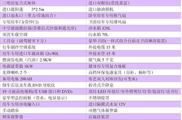 日產(chǎn)房車標(biāo)準(zhǔn)配置: