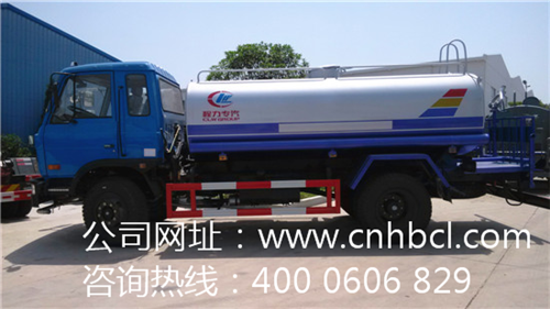 該款東風145灑水車底盤型號為EQ1162GKJ1,配備玉柴160馬力柴油發動機,新款駕駛室,駕駛室帶翻轉,汽剎,帶方向助力。罐體采用武鋼優質鋼材制作,按照公告尺寸制作,尺寸為4200×2300×1470,有效容積可達11.2立方。專用功能為:前沖后灑,帶側噴,帶高位花灑,罐體后帶工作平臺,平臺上安裝綠化灑水高炮,炮可噴灑農藥,并有多種雨狀可調節(大雨、中雨、小雨、毛毛雨),配備全國質量評比第一名的程力威牌大功率專用灑水泵,泵可自吸自排。整車帶自流閥,帶消防接頭,帶過濾裝置。