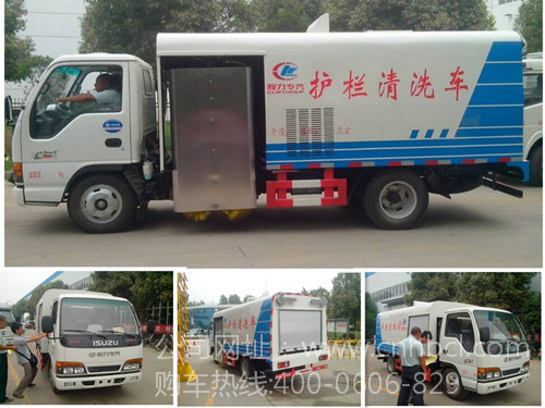 國(guó)四3方慶鈴五十鈴100P護(hù)欄清洗車(chē)選用慶鈴五十鈴底盤(pán),慶鈴五十鈴100P國(guó)四底盤(pán)配98馬力4JB1CN五十鈴發(fā)動(dòng)機(jī),配置五十鈴MSB五檔變速器、冷暖空調(diào)、方向助力、前橋2.5噸,后橋4.8噸,700-16尼龍?zhí)ィ?SPAN style="FONT-FAMILY: 宋體; COLOR: #000000; FONT-SIZE: 14pt">罐體容積3立方. 是新一代多功能公路設(shè)施清洗設(shè)備。它可全自動(dòng)高速的擦洗城市道路各種型式的隔離護(hù)欄,適用于城市道路隔離護(hù)欄、道路兩側(cè)墻體的刷洗。