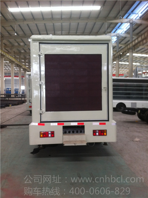 外觀整潔,樣式新穎,做工精美,價格實惠等優點集結一身,逐漸成為了都市文化傳媒公司的新寵。廣告宣傳可根據客戶的不同需求進行不同配置的生產,清晰的戶外全彩LED屏完美的詮釋了這輛車的價值,讓廣告宣傳變得流動化,自帶音響和伸縮舞臺板,隨時隨地能成為宣傳與活動的中心。單面滾軸廣告欄,讓戶外定點宣傳與活動更加方便。自帶條形滾動字幕,隨時隨刻傳播文字信息與活動內容。