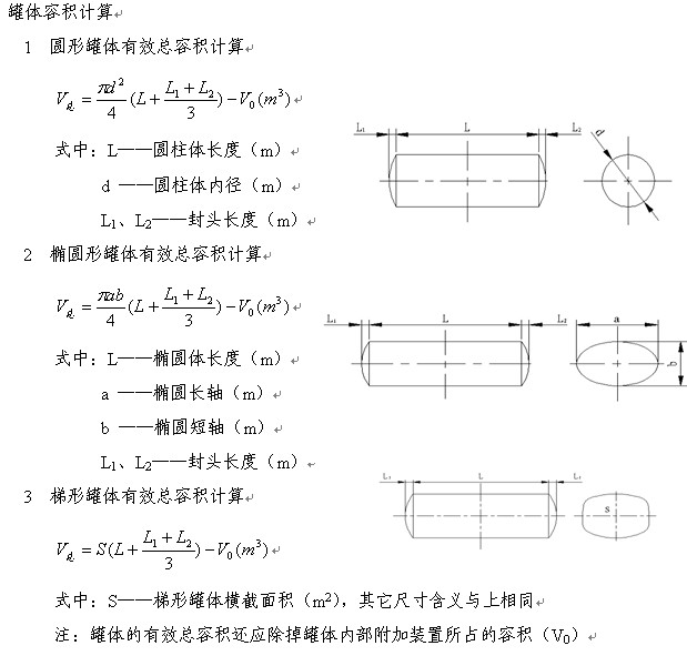 罐式運輸車輛罐體容積計算