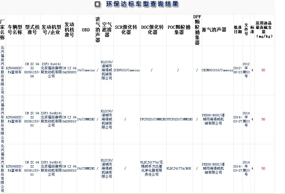 福田奧鈴6.8平方LED廣告宣傳車環保公告參數參考,上牌無憂: