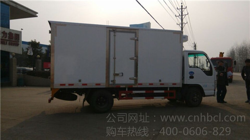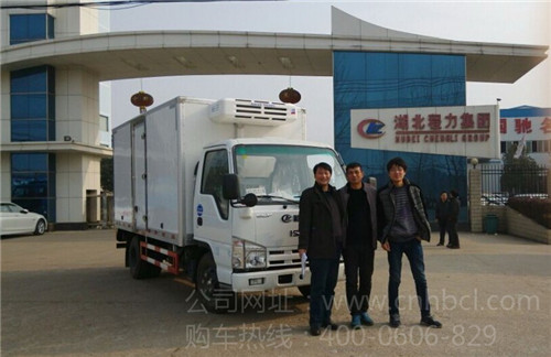 慶鈴五十鈴100P冷藏車采用慶鈴五十鈴100P單排座國四冷藏車,整車公告:CLW5040XLCQ4 , 底盤型號:QL10403HARY , 配備國四 4JB1CN發動機98馬力,排量2771ml, 3360mm軸距,配置五十鈴MSB五檔變速箱,冷暖空調,方向助力,前橋2噸,后橋4噸,7.00-15 輪胎,貨廂內尺寸;4100*1740*1750(mm),冷藏車廂體采用內外玻璃鋼制作,中間保溫層厚度為80mm聚氨酯發泡切片, 配備韓國韓亞DT-150非獨立制冷機組,制冷溫度-18°駕駛室內可隨意調節。