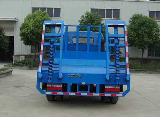 上藍牌國四東風玉柴4102發動機平板運輸車配置正宗國四玉柴4102發動機(型號:YC4FA100-40),75kw,東風145帶后副變速箱,前橋4.2噸,后橋7.5噸,軸距:3500mm,200雙層大梁,750-16尼龍胎,2030駕駛室,