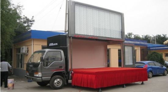 LED廣告車能夠播放各種視頻,一般用于產品推廣、品牌推廣、選秀活動、銷售現場展示、體育賽事、演唱會、音樂會等。可以進行現場展示、交流、互動,宣傳范圍廣泛,可顯現圖象和文字,影像畫面明晰、操作簡略、各種計算機信息、圖形、圖像及二、三維動畫等,存儲數據信息容量大,并具有同 步顯現功用。
