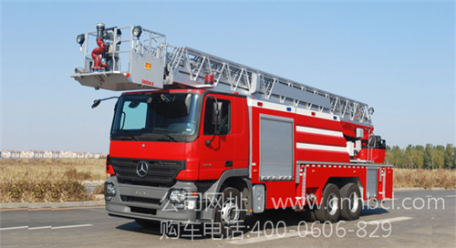 一般來說,云梯車以救援為主,但也可噴射滅火劑滅火。大多數云帝徹的梯架為單純伸縮式直臂,有些云梯車卻將最后一節梯架做成了可折疊式,該云梯車作業范圍更大,操作靈活性更強,俗稱直曲臂云梯車。