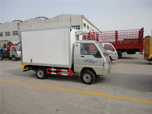 客戶朋友們選購冷藏車之前肯定會先看其外觀和整體,冷藏車廂體制作材料有彩鋼板和玻璃鋼這兩種材料,玻璃鋼制作的廂體外觀平整度和光滑度好,而彩鋼板制作的平整度和光澤要差些,其次就是看廂體保溫層的厚度問題,保溫層有5公分和8公分之分,當然保溫層厚些制冷速度會更快些,保溫效果會更好一些,這些肉眼都是能夠看得到的,再就是廂體四周及門飾材料,我公司全部采用不銹鋼材料制作,不僅美觀又耐用,使用壽命也長,而有些廠家采用鐵,鐵容易生銹,又不美觀,使用壽命也短。