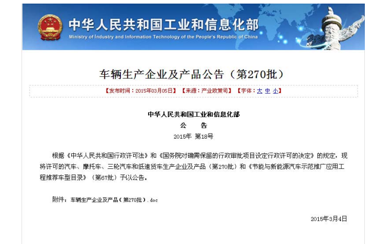 湖北程力專用汽車有限公司經工信部批準更名為“程力專用汽車股份有限公司”,并于“工信部公告 2015 年第 18 號”即生產企業及產品公告第 270 批發布, 現 270 批公告上的公司名稱全部為新公司名稱。同時我公司的所有車輛環保公告、 3C 證書、車輛購置稅都在申請變更中,在“工信部公告 2015 年第 18 號” 生產企業及產品公告第 270 批最后一頁有特別說明: 除特殊說明外,已核準更改產品技術參數、注冊商標、企業名稱、注冊及生產地址的企業,允許其所生產的相應產品在核準更改后 6 個月內按照原《公告》內技術參數生產、銷售。因此我公司更名給您工作帶來的麻煩,敬請原諒,感謝您的支持!