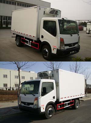 鄭州日產凱普斯達廂長4米國四冷藏車(藍牌冷藏車),整車型號:ZN5041XLCA5Z4型冷藏車,底盤型號:ZN1041A5ZM,底盤采用鄭州日產凱普斯達駕駛室帶翻轉,冷暖空調,收音機,動力轉向,東風德納車橋,杭州ZF五速變速箱,發動機芯片防盜,手動光軸調平器(燈光),7.00R15LT子午線輪胎,NISSAN尼桑ZN30D13-4N中冷增壓,高壓共軌式發動機,130馬力,國四排放。國四鄭州日產凱普斯達廂長4米冷藏車圖片展示如下: