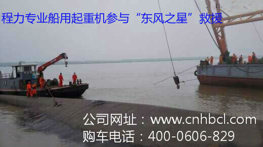 本次在事故現場參與救援的是湖北程力公司生產的14噸船用起重機,簡稱船吊(如下圖)。