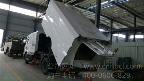 ● 污水箱采用不銹鋼制作,裝有防溢滿報警裝置,后門設有污水排放軟管,箱體可以向后大傾角傾翻卸料,污水中的沉積泥沙和垃圾可以自動卸出,大大減輕了工人的勞動強度;