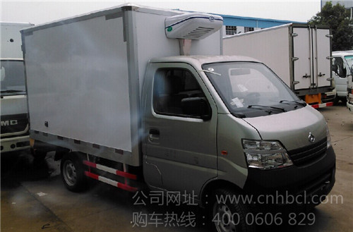 長安冷藏車,箱體容積5m³,長安原裝單排可前翻駕駛室,國四68馬力汽油國四發動機,5檔變速箱,內外材料可以選用玻璃鋼、不銹鋼、鋁板等材料,夾層采用8厘米厚聚氨酯發泡材料,保溫性能良好。根據車輛用途可以選配肉鉤、通風槽等。冷機可以采用冷鮮機組、冷凍機組、獨立機組和非獨立機組,溫度可最低可達-18度。箱體兩側可選裝開門??蛇\送肉類、海鮮、蔬菜、雪糕、藥品等等。廂體尺寸2550×1410×1490(mm),額定載質量:550kg,可上藍牌。