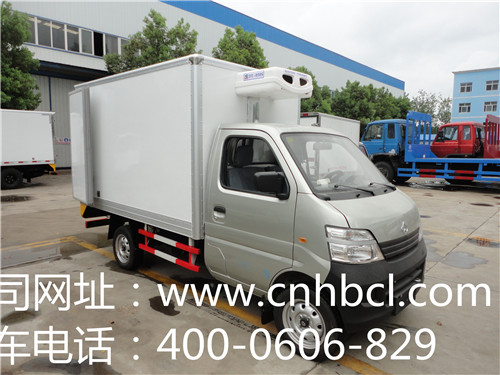 長安冷藏車:長安單排駕駛室,前輪前置,2.75米軸距,長安JL466Q1汽油機(正宗國四)70馬力(16氣門,)5檔變速,前盤后鼓剎車。165/70R13LT真空胎。整車尺寸:4380X1580X2390,廂體尺寸:2550X1410X1490,廂體采用內(nèi)彩鋼板外玻璃鋼制作,中間是6厘米或8厘米厚聚氨酯保溫板,配高性能制冷機組,廂內(nèi)溫度可達零下5左右。