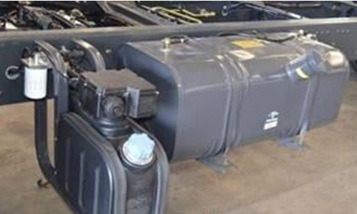 一是國四車與國三車加油裝置多一個尿素罐,也就是在油箱旁邊的罐罐。油箱左邊這個小罐,加尿素液有點麻煩要去專門的地方。按照咱家新政策的情況來看,目前大概100升油用5升尿素。二是國四車消聲器變化比較大,新加了尿素噴嘴和一些傳感器。
