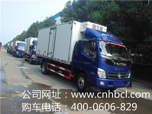 福田奧鈴藍牌冷藏車整車型號:BJ5049XLC-BB型冷藏車,外型尺寸: 5995X2050,2200X3000(mm) 底盤型號: BJ1049V9JD6-AA 貨廂尺寸: 4085X1820,1970X1820 (mm) 總質量: 4495(Kg) ,額定質量: 1165,1100(Kg) ,整備質量: 3200(Kg) ,最高車速: 95(km/h),某冷鏈公司在湖北程力訂購5臺福田奧鈴冷藏車(圖):