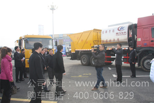 程阿羅總經(jīng)理詳細(xì)介紹了這款由湖北程力公司自行研發(fā)制造的瀝青灑布車