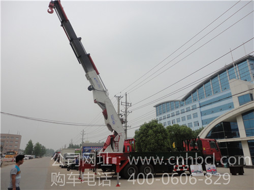 大噸位隨車吊上裝部分由吊臂、吊座、油缸、卷揚(yáng)機(jī)、控制系統(tǒng)組成。吊鉤整體感覺厚重結(jié)實(shí),很是壯觀。最大可吊160噸!吊機(jī)可以360度回轉(zhuǎn),長度最長可達(dá)15米,可以在周圍任意調(diào)取。后方還有操作座椅,視線開闊更方便操作,下方還同時配備雙聯(lián)動操作桿,更加人性化,操作更方便。操作桿旁就是后方的液壓支腿。液壓系統(tǒng)由齒輪泵通過取力器、變速箱與發(fā)動機(jī)相連接,由發(fā)動機(jī)提供吊機(jī)動力。