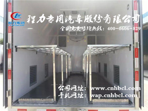 雞苗運輸車(雛禽運輸車車)廂體內(nèi)有通風(fēng)裝置和加熱裝置,廂體上部有8個電動換氣扇,可換氣和進風(fēng),以保證廂體內(nèi)部小雞的氧氣充分。廂體下側(cè)左右兩邊各有5個小門,可通風(fēng),加熱,換氣以保證小雞的氧氣充分。廂體內(nèi)根據(jù)用戶要求定制支架。雛禽運輸車(雞苗運輸車)是在廂式車底盤的基礎(chǔ)上,選用優(yōu)質(zhì)、高強度材料,采用國際流行的分塊拼裝工藝加工而成。