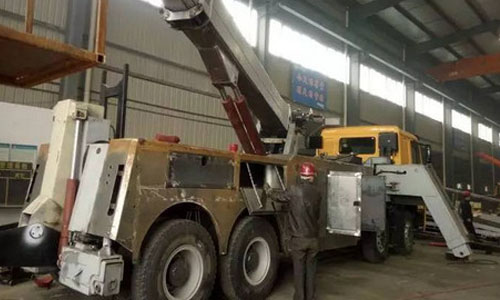 3、360度旋轉清障車組裝線下線調試中: