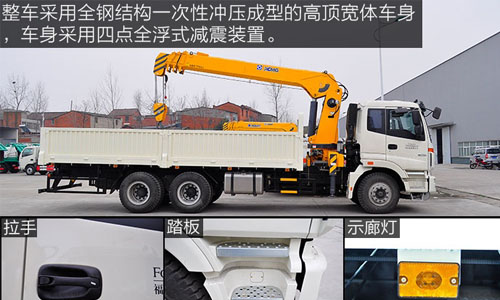 整車采用全鋼結構一次性沖壓成型的高頂寬體車身,車身采用四點全浮式減震裝置,內(nèi)飾駕駛室有多向可調節(jié)減震座椅,安全駕駛的同時,也充分符合現(xiàn)代社會對于環(huán)保的要求。上下駕駛室踏板采用三階層不銹鋼鏤空防滑設計,上下車更加穩(wěn)定安全。車身周圍安裝有示廓燈,警示前后車輛,提高安全行駛及安全作業(yè)。