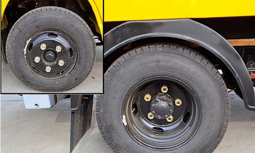 整車配備尺寸為700R16LT的鋼絲胎,較普通的尼龍胎而言承載能力更強,安全系數更高一些。
