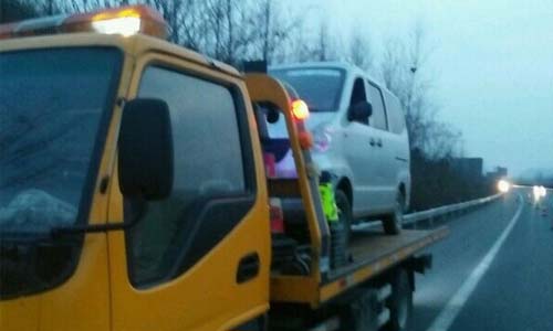 大約過了三十多分鐘,此車來了,在裝車之前事主問他們拉到淮河收費站出口需多少錢,他們還一直表示本地車好說,誰知裝好后,一個年青小伙子就說一千元,少一分不行(大概是看事主一個人的緣故吧!),這簡直就是訛人嗎!于是事主要求他們把車卸下來,他們說卸下來也得一千元,不然拖到停車場去,每天收你幾百元的停車費,事主也生氣了說:“你莫騙我、宰我”,交管的停車場早就禁止收費了。他們見事主這樣說,那個年輕的就到一邊玩手機去了,還有另一個年長點的也到另一邊去了。