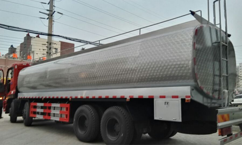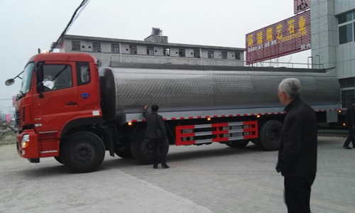 液態食品運輸車運送液態食品的罐車。罐體用食品級不銹鋼板制作,罐體外部需作保溫層防止鮮奶變質,罐體內部要求光潔、無銳角,一般需要在每個奶艙內加上cip(清洗裝置)。運距大于500km可以考慮加小型制冷機。