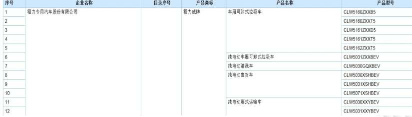3月23日,國家工信部在官網上公示了申報《道路機動車輛生產企業(yè)及產品公告》(第283批)的載貨及專用車產品。第一商用車網統(tǒng)計后發(fā)現(xiàn),本次公示的產品中,共涵蓋1489款不同型號的車型,其中包含純電動載貨及專用車(含底盤)124款,涉及45個企業(yè)。本次產品公告程力專汽車股份有限公司程力威牌共有七款車型: