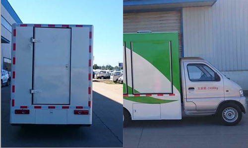 售貨車上裝部分有:(廂體內徑)外包:1.2冷板,內包:1.2冷板,底部鐵花紋板;開窗:1-3面開售貨窗可選,門窗邊框橡膠防水條,1000W全自動市電/電池不間斷轉換逆變器一臺,防水市電接入插座一套含雙絞電纜線10米,換氣天窗,吸頂燈,220V三孔插座四個。 | |||||