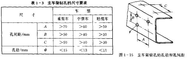 主車架是受載荷很大的部件,除承受整車靜載荷外,還要受到車輛行駛時的動載荷,為了保持主車架的強度和剛度,原剛上不允許在主車架縱梁上鉆孔和焊接,應盡量使用車架上原有的孔。