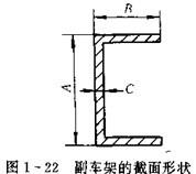 專用汽車副車架的截面形狀一般和主車架縱梁的截面形狀相同,多采用如圖1-22所示的槽形結構,其截面形狀尺寸取決于專用汽車的種類及其承受載荷的大小,表1-4和表1-5列出的斯泰爾91系列重型專用汽車副車架的截面盡寸。對于隨車起重運輸車(隨車吊)的副車架來說,在安裝起重裝置的范圍內,應按如圖1-23和圖1-24所示的方式用一塊腹板將副車架截面封閉起來,以提高副車架的抗扭和抗彎能力。