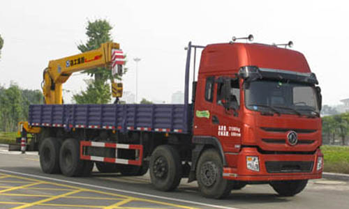 程力威牌CLW5310JSQT4型隨車起重運輸車底盤型號為EQ1310VFJ,底盤軸距為1850+3900+1300,1850+3900+1350,1850+4350+1300,1850+4600+1350,2100+4250+1300(mm),使用11.00-20,11.00R20,12R22.5型號的輪胎規格,搭載ISC8.3-292E40A ISLe340 40 YC6L320-42 WP10.310E40型號的發動機,排放依據為GB3847-2005,GB17691-2005國IV,符合國家排放標準,底盤承載力強,動力強勁,運輸可靠。