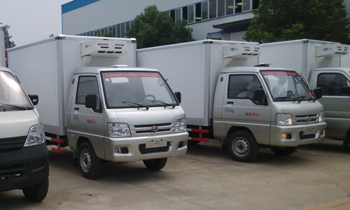 以上兩款小型冷藏車廂體采用內(nèi)外玻璃鋼中間聚氨酯發(fā)泡真空負(fù)壓一次成型,厚度5cm,底板為鋁合金防滑花紋板雙后開門門框架全部采用玻璃鋼制成的整體框架,門板重量輕,防腐性能好。雙后門中縫帶斜度,開關(guān)方便。門邊框密封采用進(jìn)口優(yōu)質(zhì)橡膠(三元乙丙)密封條進(jìn)行密封,保證廂體保溫效果的穩(wěn)定性,門邊,門鎖及附件均為不銹鋼制作。