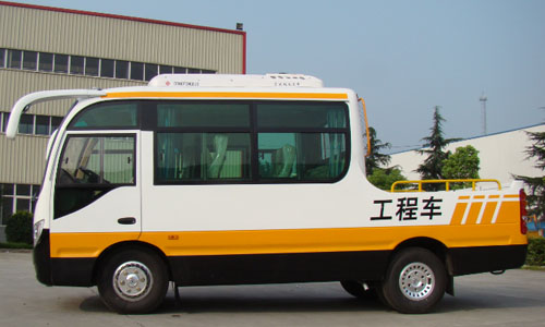 EQ5060XGCT6東風搶險檢修工程車外形尺寸:5990*2250*2780,2990mm,軸距:3300mm,發動機(排量/功率):YC4FA130-40(2982ml/95kw)/ISB3.9-140E40A(3900ml/103kw),東風五檔變速箱,摩擦片外直徑350mm,東風德納車橋:前橋2.3噸,后橋5噸,后橋主減速比:4.875,7.00R16鋼絲胎,標配10座,全車安全帶,油箱容積:90L,懸架系統:多片簧(前8片/后10片),制動系統:雙回路氣壓制動,后橋儲能制動,斷氣剎,空氣干燥器,轉向系統:動力轉向(帶泄壓閥),方向盤上下,前后可調,工程黃,帶“工程車”字樣。
