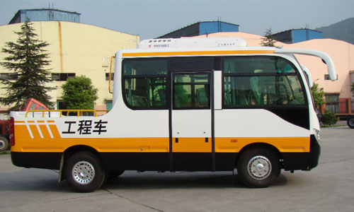 EQ5060XGCT6東風搶險檢修工程車標準配置:普通內飾,普通地板革(方塊),半幅式遮陽簾,左內行李架,右內扶手,手動折疊門,乘客區PVC平地板,后載貨區地板及邊板為鐵花紋地板,兔耳鏡,氣喇叭,對刮式電動雨刷器,天窗,輪罩,電風扇,調檔除霜器,120Ah免維護蓄電池,整車普通漆。
