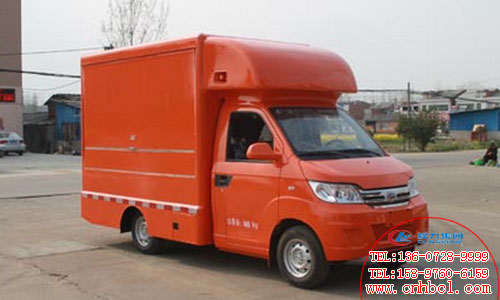 廂體左右后可選裝上翻遮陽(yáng)板,下翻吧臺(tái),亦可可選裝開單或雙開門,或者封閉;前后左右選裝LED屏或滾軸燈箱或封閉,選裝頂帽造型和尾部踏板,廂體頂部封閉不可開啟,車輛顏色可選,文字噴涂位置可變化。 | ||
