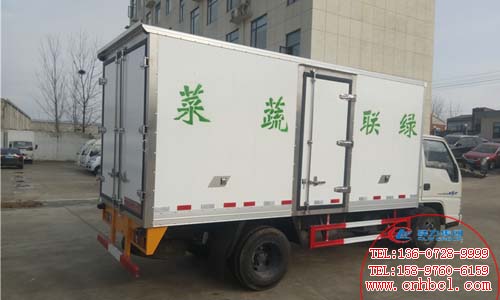 國五江鈴新順達4.2米冷藏車廂體:內外玻璃鋼,8cm高密度聚氨酯保溫,底板為防滑花紋鋁板,后門鎖件為不銹鋼。