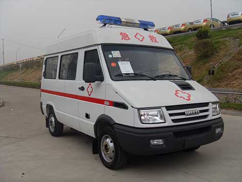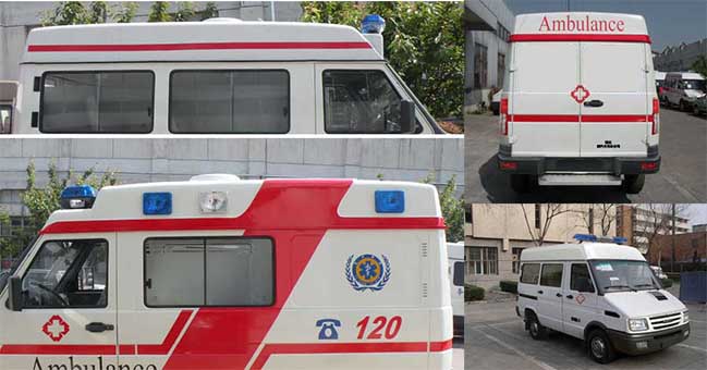 國五依維柯轉運型救護車基本配置清單:1、便捷折疊擔架,2、醫藥柜1件,3、固定安裝氧氣瓶1只,4、輸液吊構2只,5、消毒燈1只,6、污物桶1只,7、單人座椅2只,8、長條座椅2人位軟座墊,軟靠背和安全帶1套,9、中隔斷帶滑窗一套,10、前頂裝全藍警燈警報器1套,11、12V照明燈2只,12、500W逆變器1只,13、220V電源插座1組,14、醫用耐磨塑膠地板革,15、貼救護十字標志,16、后艙空調和暖風。
