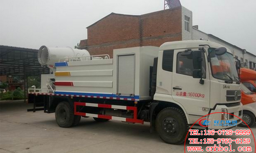 東風天錦抑塵車采用東風公司原廠生產的4700mm軸距,整車外形尺寸為9350,9000×2500×3850(mm),水罐罐體有效容積:8.5立方米,若改為方形罐則可裝11.5立方水,配備CLW-8三層超靜音噴霧機,柴油75KW柴油機,射程可達到55-60米。