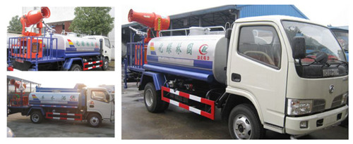 降塵噴霧車、抑塵車的作用 噴霧降塵車個頭近似普通卡車,它的抑塵效果卻十分驚人,工作效率約為普通灑水車的30倍。據技術人員介紹,一臺噴霧降塵車的工作直徑可覆蓋4個標準足球場。水箱中的水經過霧化后,由高壓風機噴出。相比普通灑水車噴出的水流,降塵噴霧車可噴射微米級水霧,其吸附力也增加了3倍,耗水量卻降低了70%,遭遇霧霾天氣、空氣質量PM2.5嚴重超標時,可隨意選定一個區域進行液霧降塵、分解淡化空氣中的顆粒濃度、將飄浮在空氣中的污染顆粒物、塵埃等迅速逼降地面,達到清潔凈化空氣的效果。